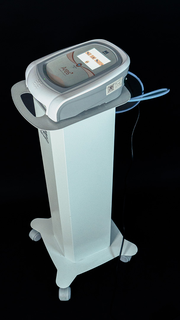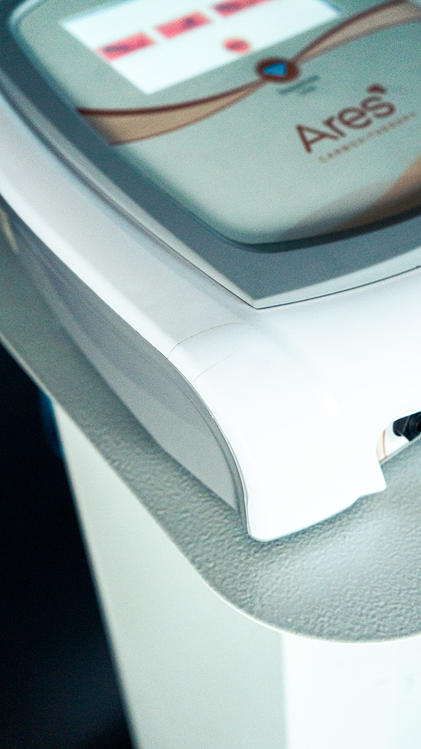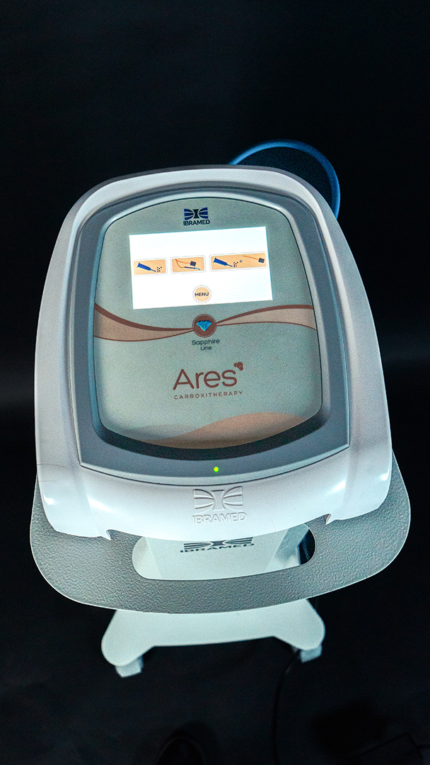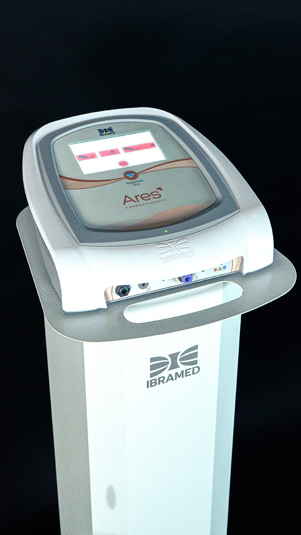 Ares High Volt es un equipo microcomputarizado para terapias de Carboxiterapia Térmica y High Volt (corriente pulsada de alto voltaje) de manera aislada, o terapias en simultáneo de Carboxiterapia + corriente High Volt), utilizado en la medicina estética y fisioterapia dermatofuncional.